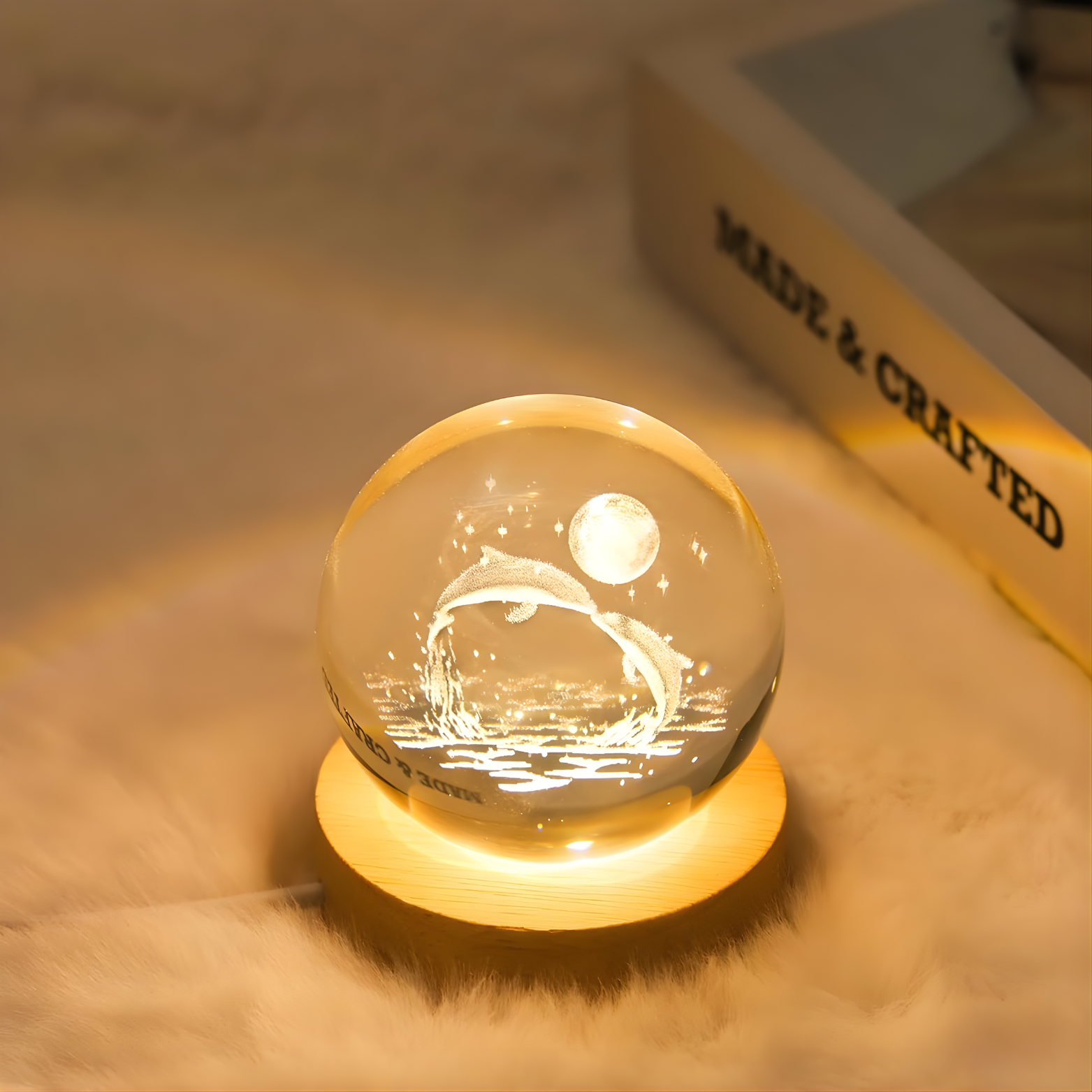 - Stunning 3D laser-engraved Dolphin inside Moon design 🐬🌙
